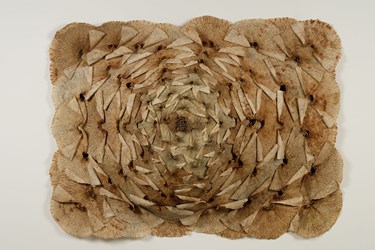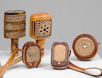 纖維工藝博物館說明,去年「生活類」由年僅22歲的王婷瑩作品《藺一個地方》奪得首獎,她以故鄉大甲藺草為發想,結合隨身電風扇,享受配戴在身上帶來的陣陣藺草香氣涼風,兼涵藺草工藝的美與實用性,獲得評審團的肯定;「美術類」首獎作品則是排灣族藝術家峇岦嵐偲˙旮札涅灆的《臍待》,他運用「構樹皮」纖維材質創作,兼顧當代美學和傳統精神而獲得殊榮。