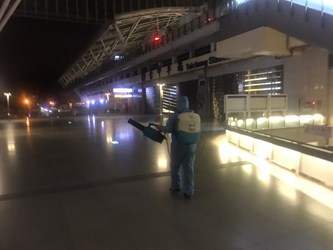 交通局表示,端午節連假期間,各大眾運輸系統預計將湧現大量返鄉人潮及遊客,交通局防疫不鬆懈,針對人潮聚集較多的區域展開消毒作業,也呼籲市民朋友做好防疫措施。(6/4*6)*交通局