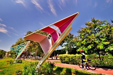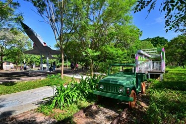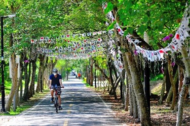 觀旅局指出,夏日炎炎,自行車道夾道成排大樹構築一條涼爽的綠色隧道,適合騎乘單車品味午後悠閒時光,也適合散步漫遊,體會浮生偷閒的樂趣。此外,充滿特色的S彎道、波浪道更是許多攝影人士熱愛的拍照地點。市府近年增設許多親子共遊設施,如和平場站附近軍用車廂主題廣場,利用原本軍用吉普車車體上色,充滿迷彩樂趣,另「紙飛機雕塑」、「22公尺山丘磨石子溜滑梯」、「沙坑」及「夏日戲水區」,也都適合闔家共遊。