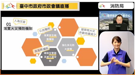 今日消防局長曾進財以「台中消防安全再進化,高級救護 Level Up!」進行專案報告。曾局長表示,消防人力成長率從107至111年成長16.71%,為六都第二,在消防服務人口比改善幅度更達14.38%,為六都第一。另台中市在今年1月至4月六都緊急救護到院前心肺功能停滯傷病患康復出院率達6.67%,為六都第二,OHCA康復出院率穩定升高,另旁觀者CPR更為六都之冠。