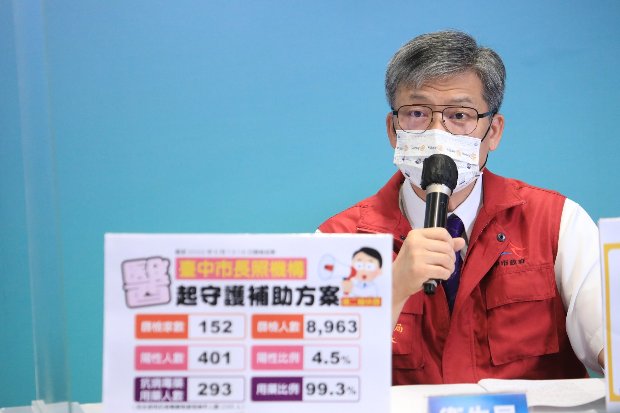 曾局長指出,市府啟動第二輪「醫起守護」篩檢計畫,613日至16日間,已完成篩檢152家長照機構、8,963人,陽性人數401人、陽性比例4.5%,用藥人數293人、用藥比例99.3%(6/17*6)*台中市政府