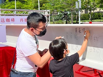 另外,還有來自西屯的航太產業業者、以及飯店業者,都對於會展中心未來完工營運的藍圖期待萬分,特別和同事一起在鋼梁前留下珍貴合照。截至今日中午簽梁民眾已經累積超過千人。為了響應民眾的熱情參與,經發局明日將特別加碼,將原本限量1,000份的CITY CAFE兌換券,提高數量至3000張,讓到場參加的民眾能到便利商店兌換享用冰涼的咖啡。