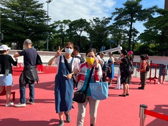 來自太平的黃先生是退休教師,定居台中超過30年,他表示,讓市民參與簽梁的想法非常棒,對於能親眼見證會展中心歷程內心無比感動;來自台北的陳先生看到新聞,今天和朋友特地搭乘第一班高鐵下台中,用行動表達支持與肯定;還有許多父母帶小朋友到現場,剛學會寫字的孩子們,用稚嫩的筆觸一筆一畫認真在會展中心鋼樑上簽上名字,留下成長過程中難忘的回憶;來自大甲區鐵砧山的70歲阿嬤,今天特地搭車來支持,活力滿滿的在鋼梁前擺出俏皮pose,為簽梁活動留下開心的剪影。