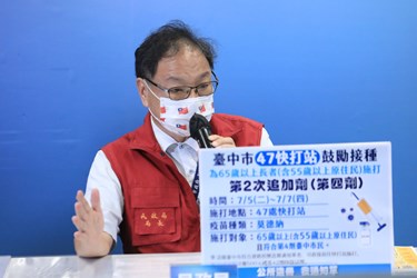 盧市長指出,台中市持續進行65歲以上長者第4COVID-19疫苗及511歲第2劑兒童疫苗接種,目前施打率均是六都第一。截至昨日為止,台中市已有145,401位長者完成第4劑疫苗接種,涵蓋率35.33%。為了進一步推進涵蓋率,市府下禮拜二開始連三天75日至77日,再加開47站疫苗快打站,提供65歲以上長者、55歲以上原住民接種莫德納疫苗。