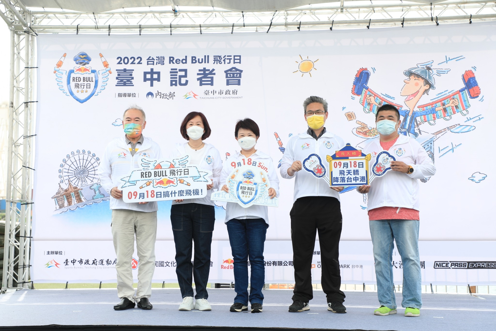 2022年亞洲唯一場、台灣首屆Red Bull飛行日即將在台中隆重登場!這項號稱地表最熱血、最狂的創意飛行器大賽,今(1)日舉辦記者會,市長盧秀燕現身力挺,她表示,台灣Red Bull飛行日9月18日台中正式起飛,盼藉此讓全國民眾體驗台中酷運動、酷城市的活力與熱情,打造獨一無二的飛行體驗,近距離接觸最潮的賽事,感受台中幸福的運動生活,也將城市行銷推向國際舞台。
