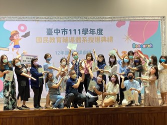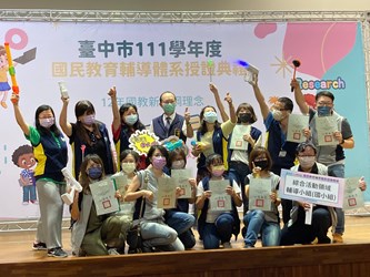 台中市政府教育局今(7)日在慈明高中舉辦111學年度「國民教育輔導體系」輔導員授證典禮,共計400多位優秀教師參與授證,未來將深入校園為全市教師提供服務,協助教師專業成長,並在7月推出持續出版《素養導向教學設計參考手冊(第四冊)》,提供教師精進教學的參考,共同打造台中市校園好師資、好課程。