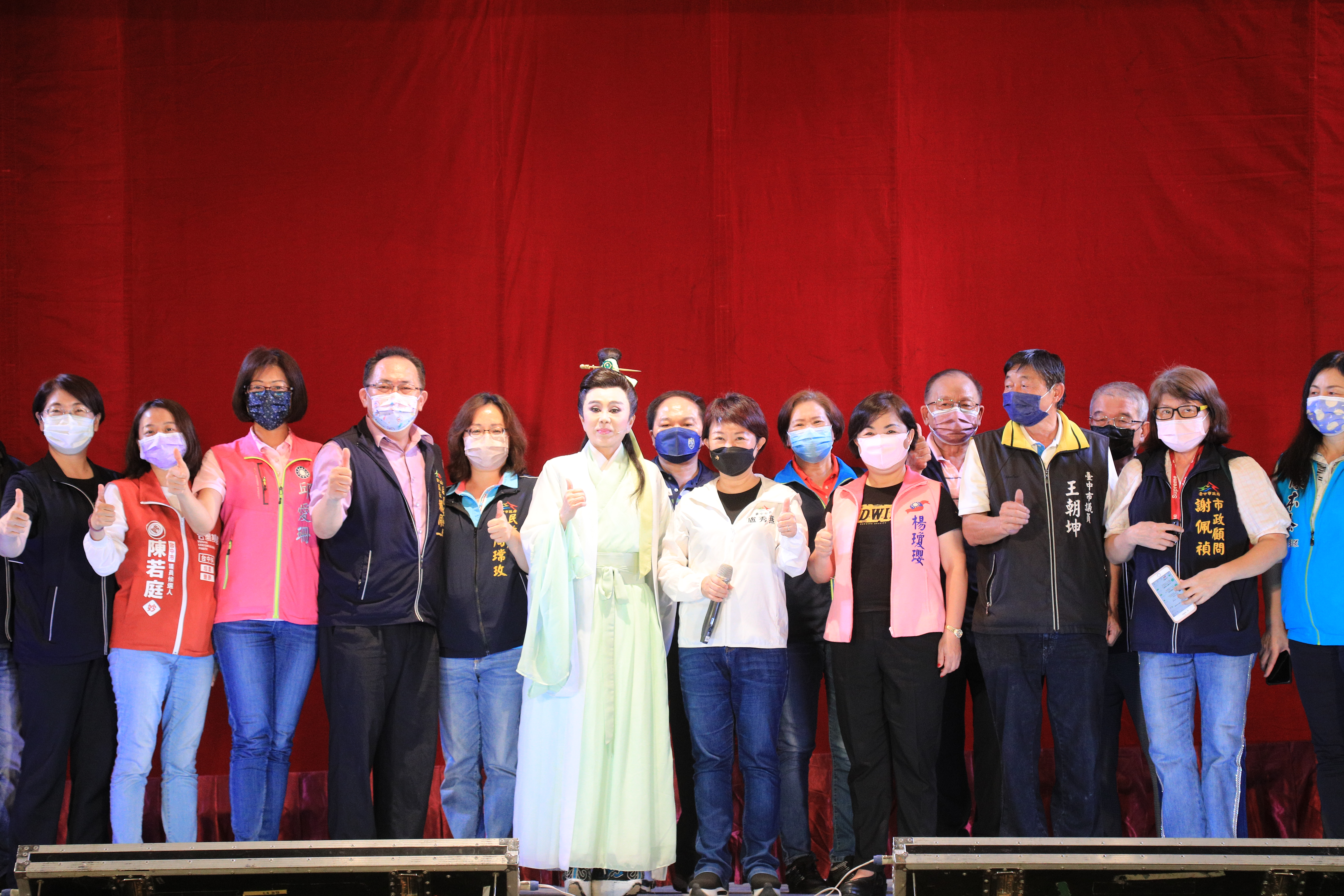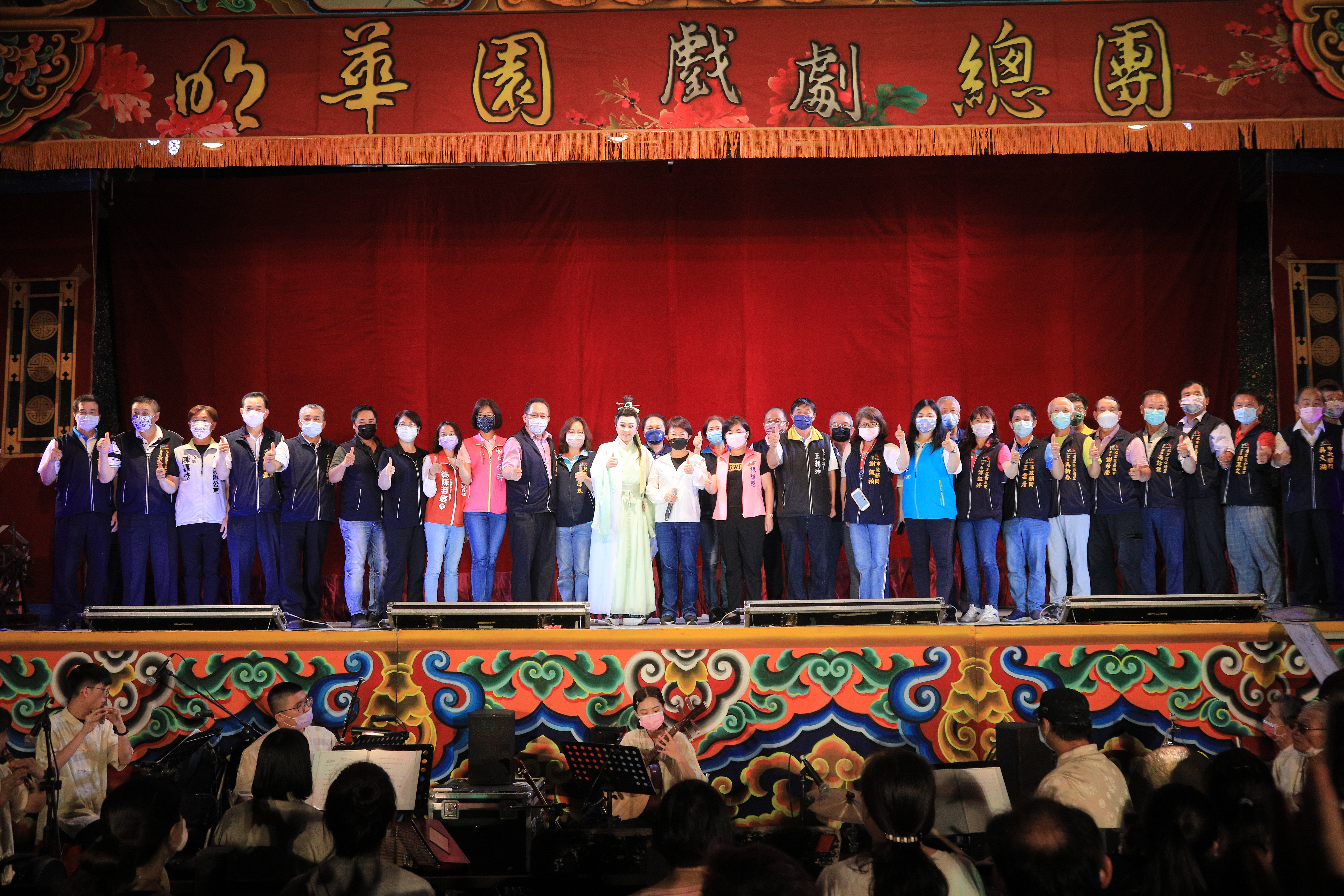 盧市長表示,感謝明華園總團長陳勝福及天王小生孫翠鳳老師,夫妻兩人攜手同心,才創造台灣最高的藝術明華園歌仔戲團為國爭光,站在世界的舞台。在眾人的努力下,疫情逐漸平緩,民眾因此能正常生活,為感謝大家的努力,市府特別邀請明華園歌仔戲團,只要繼續認真防疫,就能欣賞更多藝文活動。