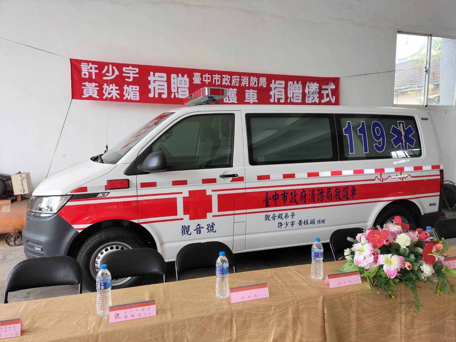 消防局指出,家住彰化縣和美鎮的許少宇與黃姝媚夫婦,因工作緣故,二三十年間常於台中及彰化海線一帶奔波,有感長期受到當地民眾的照顧,又因海線一帶年輕族群出走,居民幾乎都是年長者,緊急醫療資源的需求相對也較高,因此毅然地決定捐贈救護車予消防局,以表達對地方民眾的感謝與回饋。