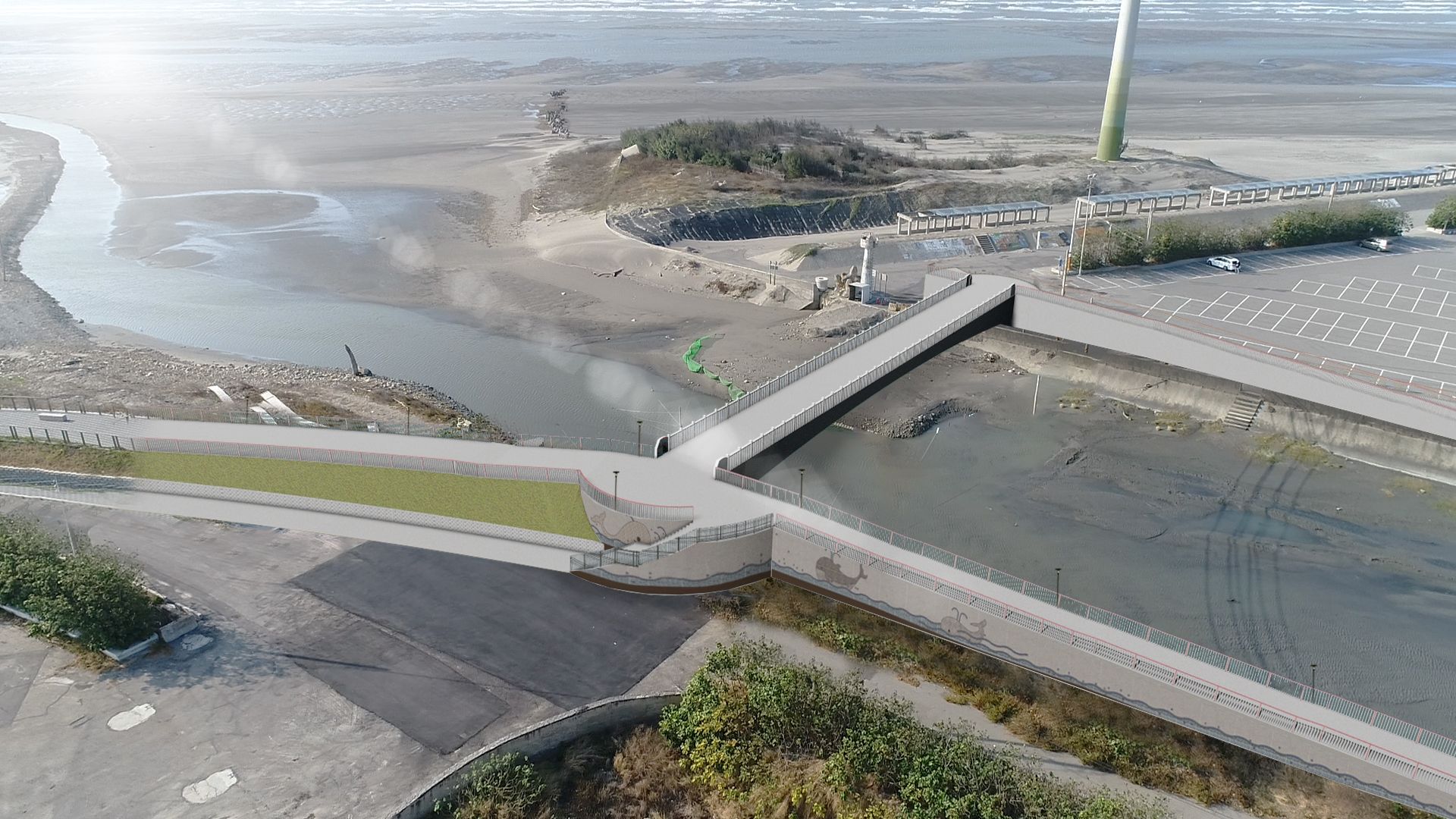 建設局表示,新建橋梁採預力混凝土梁橋,比鋼構更耐蝕,長57公尺,寬6公尺,提供行人與自行車使用,南北兩端設置南北兩岸觀景平台及自行車暨無障礙斜坡道與人行道,並連結既有的濱海堤頂自行車道。工程完工後,將銜接北岸大安濱海樂園與南岸媽祖園區,連結南北兩岸遊憩區域,提升當地觀光人潮。