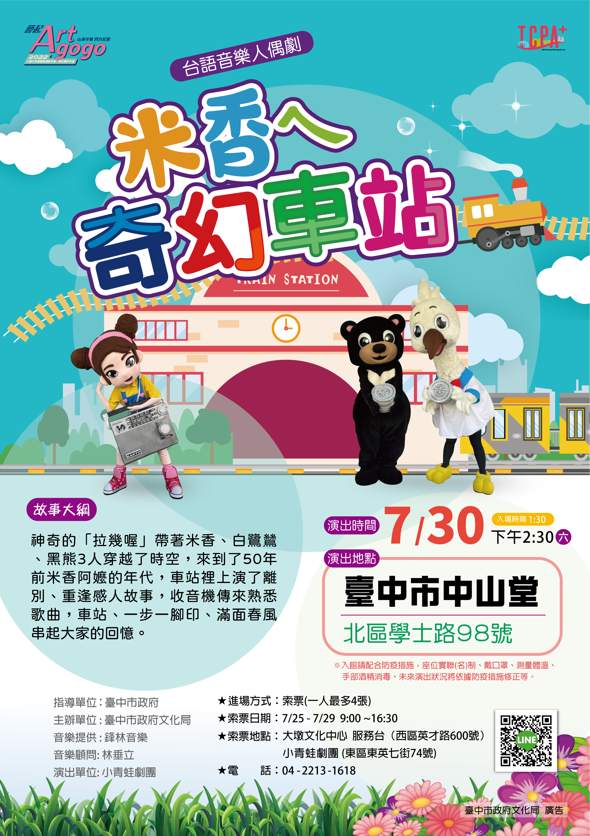 文化局指出,該系列首場演出由小青蛙劇團於7月30日打頭陣,在中山堂演出適合親子同樂的台語音樂人偶劇《米香ㄟ奇幻車站》;9月16日葫蘆墩文化中心戶外廣場,則由明華園日字戲劇團帶來才子佳人和神仙故事傳奇的《猩猩膽》,以及一心戲劇團的經典淬鍊作品《包公會國母》。