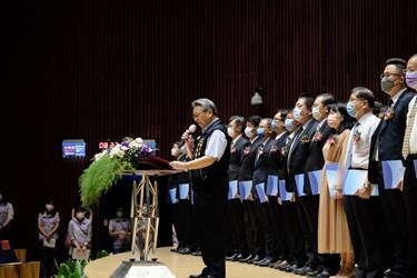 台中市政府今(1)日舉行111學年度第1學期市立各級學校新(連)任校(園)長布達及交接典禮。新學年度獲遴聘校(園)長共111位,當中有連任校長46人、調任校長47人及初任校(園)長18人。副市長令狐榮達代表市長盧秀燕出席表示,十年樹木,百年樹人,感謝師長們人生最美好時光均奉獻教育,只為提供優質教學環境,培養孩子們良好的知識與品德,幫助他們成就未來。