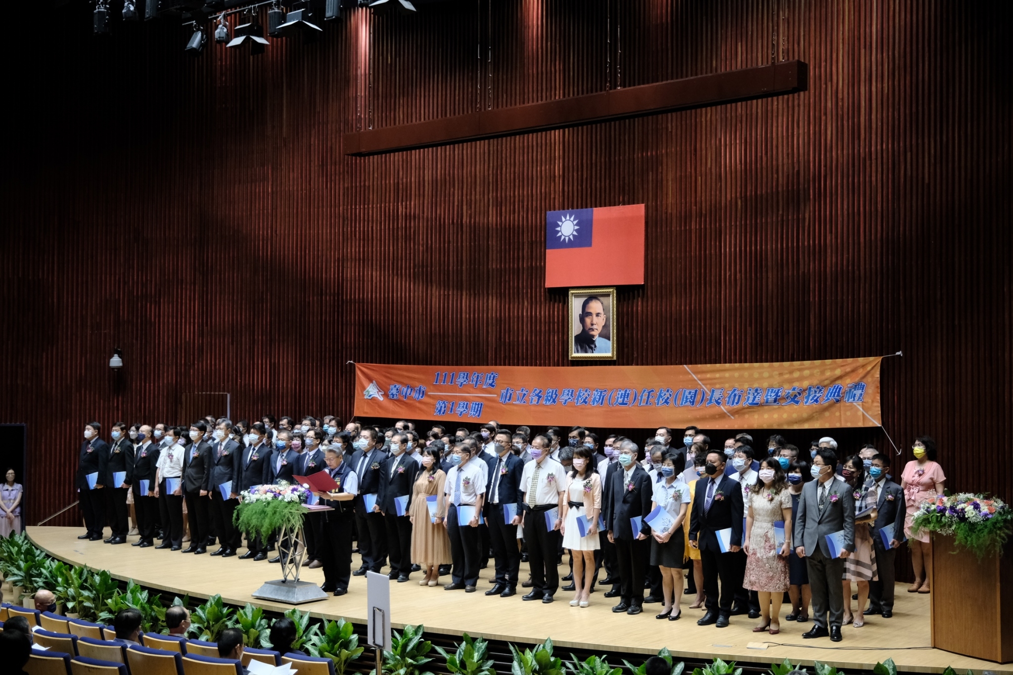 今日典禮於市府台灣大道市政大樓舉行,包含副市長令狐榮達、教育局長楊振昇、財政局長羅仙法、主計處長林淑勤均到場,另台中市議會副議長顏莉敏也派代表參與。(8/1*12)*教育局