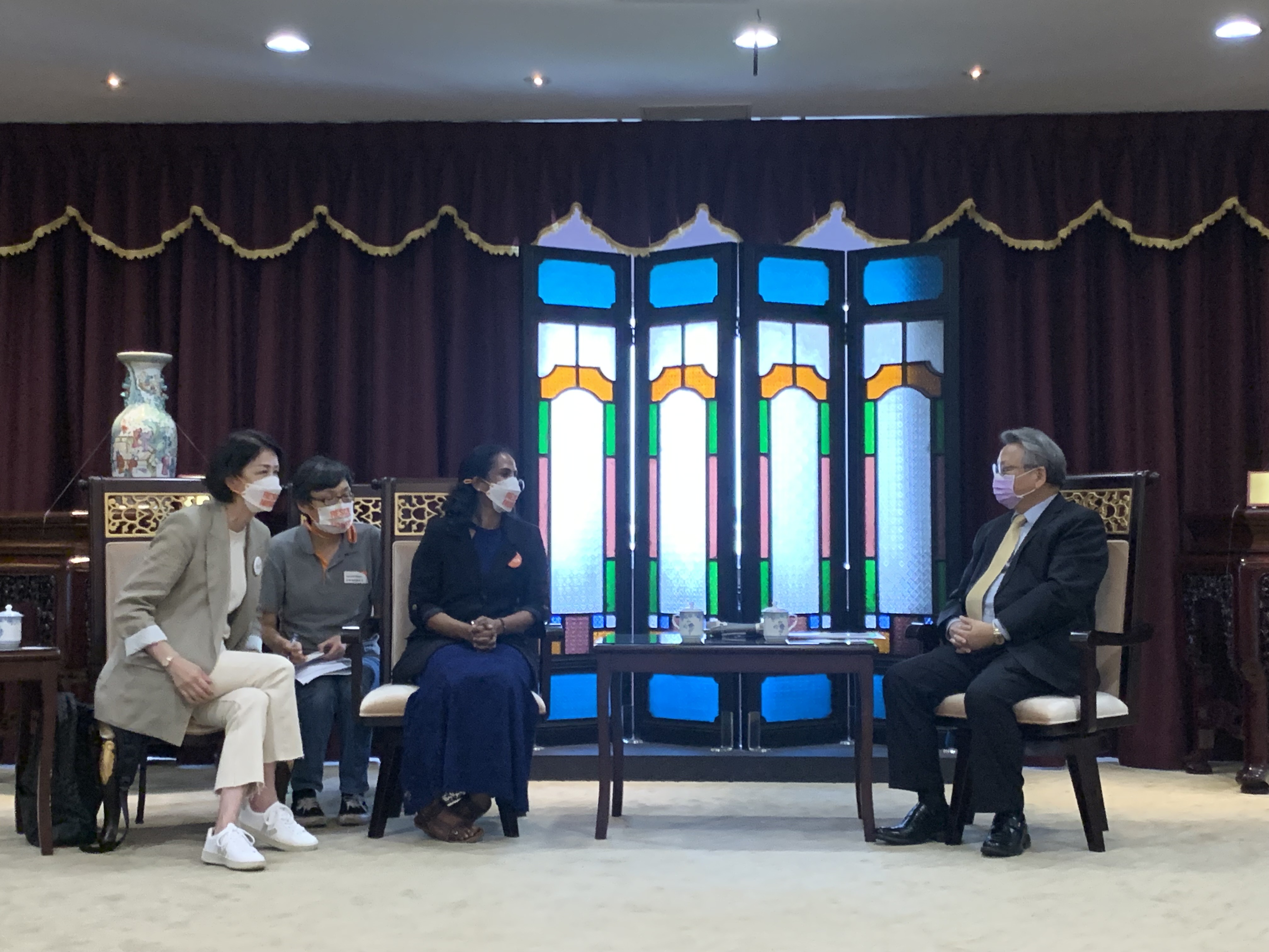 阿富汗世界展望會長阿孫莎.查理絲(Asuntha Charles)及台灣世界展望會長李紹齡今(11)日拜會台中市副市長令狐榮達,分享阿富汗展望會的前線工作,並交流國際救援和女性賦權等議題。令狐副市長表示,台中市長期致力打造性別友善環境、重視兒少培力及女性權益,以全球視野關注國際議題;期透過此次交流,持續為兒少權益及保護工作努力。
