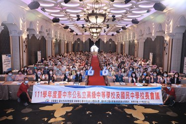 台中市政府教育局今(25)日舉辦111學年度「公私立高級中等學校及國民中學校長會議」,125位公私立學校校長齊聚一堂進行經驗交流,市長盧秀燕到場勉勵高國中校長校務經營辛勞,也特別感謝校長們在防疫期間,盡心盡力協助成立校園快打站及各項清消工作,接下來即將開學,籲請各校落實各項校園防疫指引,維護師生健康。