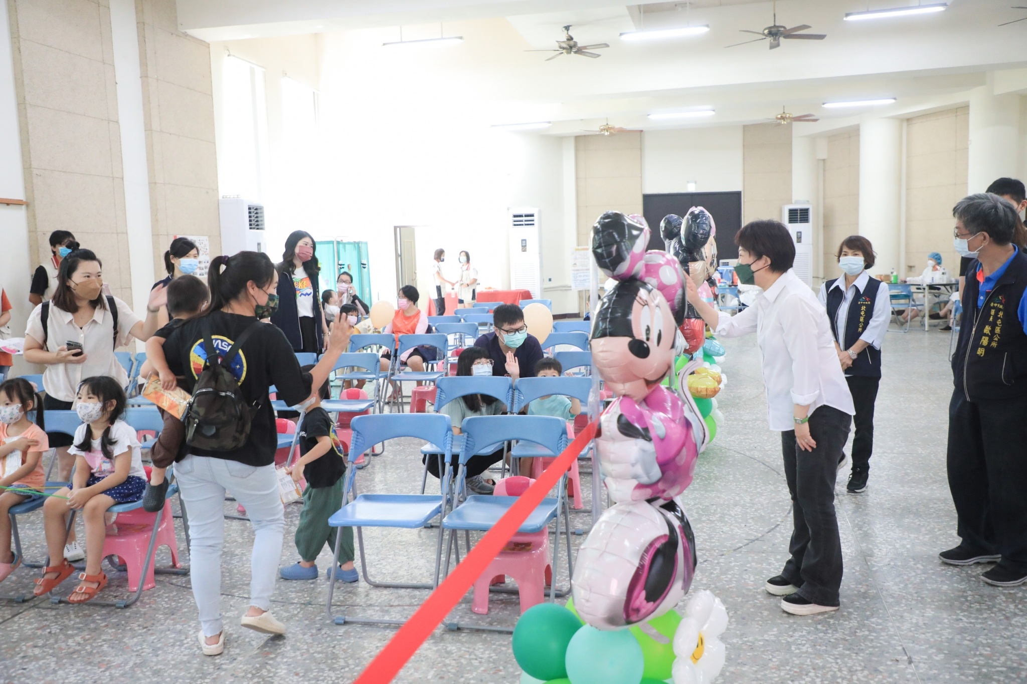 今日北屯區四里聯合活動中心快打站現場動線安排及各項友善親子措施均準備充分,秩序良好,尤其嬰幼兒注射後,難免哭鬧,現場醫護與工作人員,馬上遞上玩具氣球和點心,轉移孩子的注意力,提供親子友善接種服務;包括盧市長、市議員陳成添、衛生局長曾梓展、民政局副局長周瑺玫、北屯區長歐陽明皆到場關心。(8/27*7)*民政局