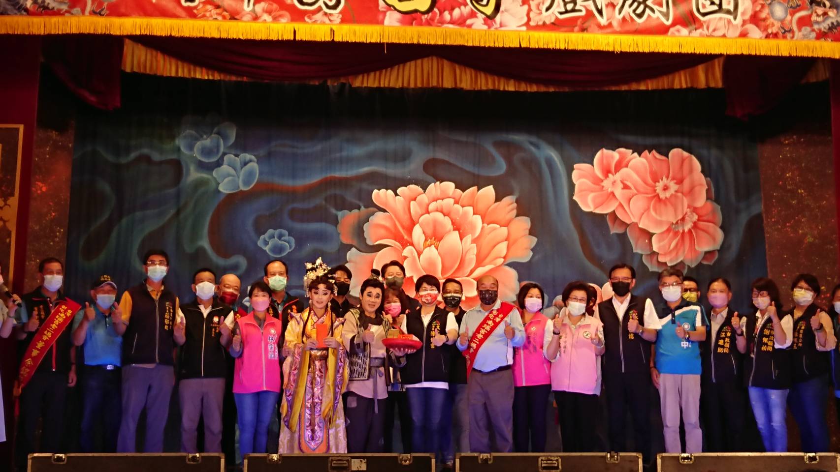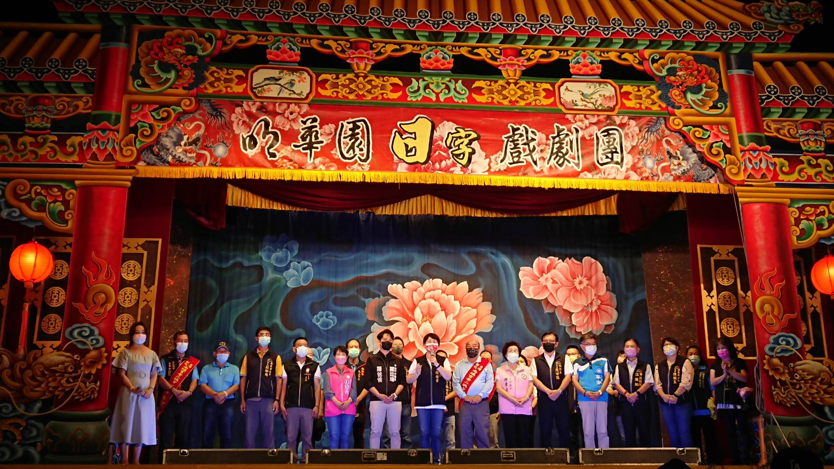 陳佳君局長代表市長及各界貴賓與明華園日字團陳勝在、鄭雅升合影