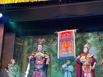 台中市政府文化局舉辦「2022台中市傳統藝術巡演」系列活動,昨(18)日晚上7時邀請明華園日字戲劇團,在南區捷運大慶站旁重劃區演出經典好戲《鬼菩薩》,由第一丑角陳勝在、當家小旦鄭雅升領銜演出,現場吸引近 2,000位觀眾熱情參與。