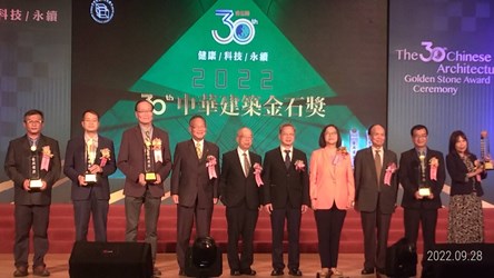 台中好宅近期捷報不斷,近日才剛獲「2022年國家卓越建設獎」及「2022建築園冶獎」公共建築景觀類等大獎肯定,今(28) 日「梧棲三民好宅」及「東區尚武好宅」又榮獲第30屆「中華建築金石獎」優良公共建設/優良空間活化類-施工組及規劃組金石獎的殊榮,其中「梧棲三民好宅」更獲該組金石首獎肯定。住宅處感謝評審及協會肯定,也將持續精進居住空間及友善公共環境品質,打造更多台中好宅,讓台中市成為宜居、移居的城市。