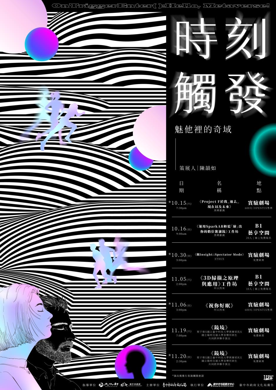 策展人陳韻如指出,實踐跨領域藝術製作的「黑碼藝識」將帶來《ProjectF於我_過去_現在以及未來》虛實吟唱聲樂擊科技藝術表演,是有感於全球疫情蔓延,人們實體接觸減少,科技運用雖方便,卻又帶來孤寂與無助;這場演出透過操控虛擬替身,並融合即時影音互動裝置和擴增實境Spark AR技術,以數位串起真實與虛擬人物,運用吟唱與聲樂擊表演,轉換成力量,讓大家在艱難中繼續前行並共同成長。另外,台灣新媒體藝術家兼導演的鄧雯馨,為紀念過世父親,以夢境出發,帶領團隊「所以然來」以3D虛擬掃描影像、真實演員、即時影像的技術再投射,在多重排列組合中,勾勒出一場關於思念的故事─《祝你好眠》實驗影像劇場。