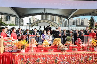 今日動土典禮由九天民俗技藝團超群鼓藝磅礡揭序,盧市長、財團法人中國醫藥大學董事長蔡長海、台中市議會副議長顏莉敏、市府秘書長黃崇典、市議會秘書長彭乾銘、衛生局長曾梓展、市議員陳成添、沈佑蓮、黃健豪、曾朝榮、賴順仁、謝明源、張玉嬿、何敏誠、羅廷瑋、賴義鍠、陳政顯、劉士州、民政局長吳世瑋、都發局長黃文彬、財政局長羅仙法、法制局長李善植、客家事務委員會主任委員江俊龍、工商發展投資策進會總幹事黃于珊均到場,立委莊競程、市議員林祈烽、蔡耀頡服務團隊及多位里長也共襄盛舉。(10/17*16)*衛生局