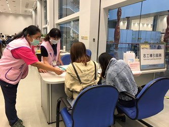 志工隊執行長江春瑟指出,為有效培訓志工服務,讓新加入志工伙伴了解「國際移工生活照顧服務中心」,日前帶領新志工進行導覽體驗,以了解周邊環境;勞工局長張大春也特別前往體驗志工服務,了解移工面對面諮詢服務過程,親自頒發志願服務手冊,感謝志工隊長期在國際移工生活照顧服務中心的值勤服務;尤其在疫情嚴峻期間,志工勇於出勤,宣導移工防疫守則、協助東協移工疫苗快打站等。