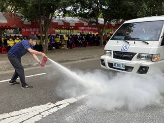 台中市政府社會局今(23)日舉辦復康巴士防火防災演習教育訓練,除消防演練、防災課程、醫護和傳染病防治相關課程,也實地演練加強輪椅固定帶、氧氣瓶等輔具基本知識與操作,照顧個別身心障礙者需求,復康巴士司機全員參加。社會局長彭懷真出席勉勵單位與司機持續守護身障者行車安全,提供更舒適安心的搭乘服務。