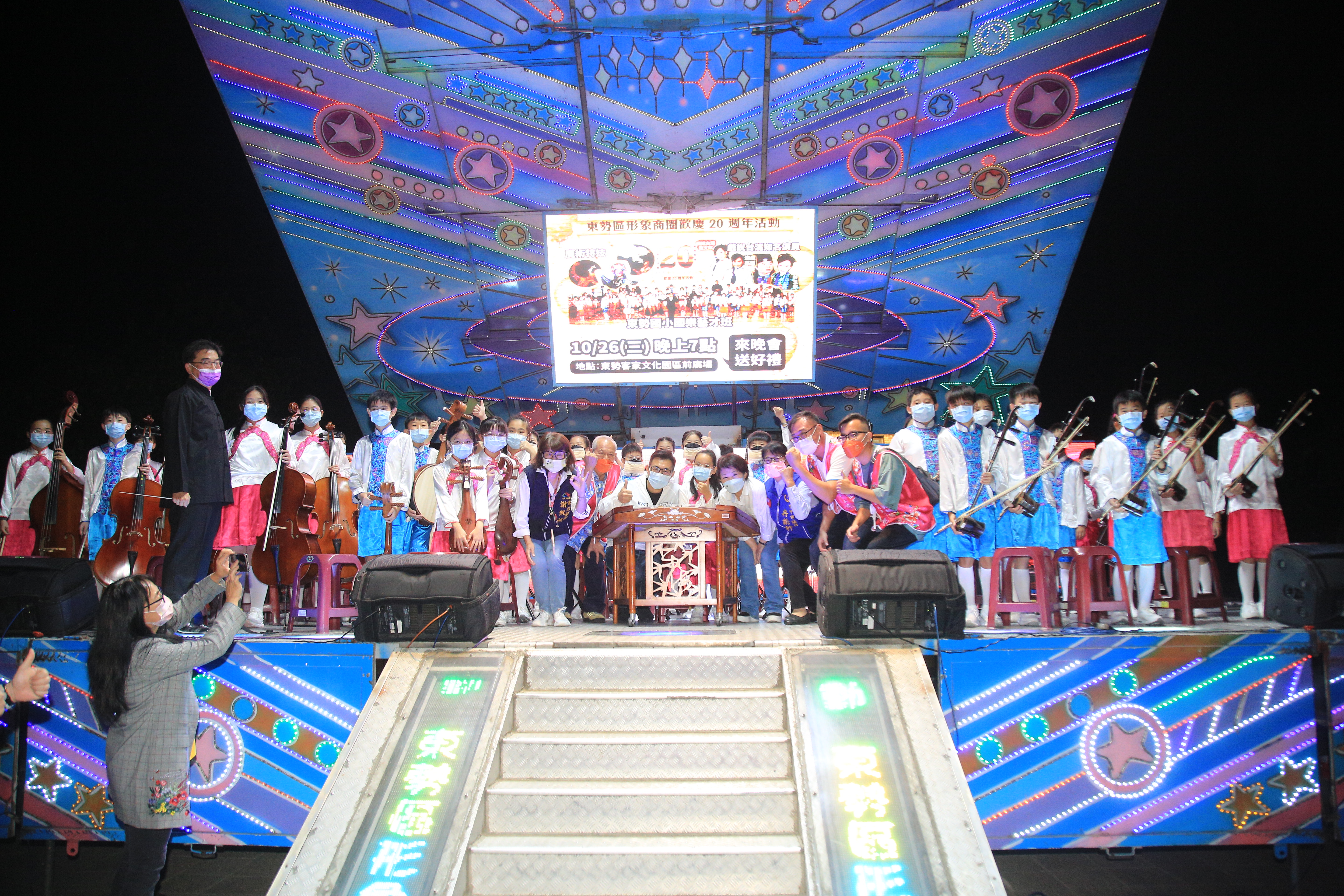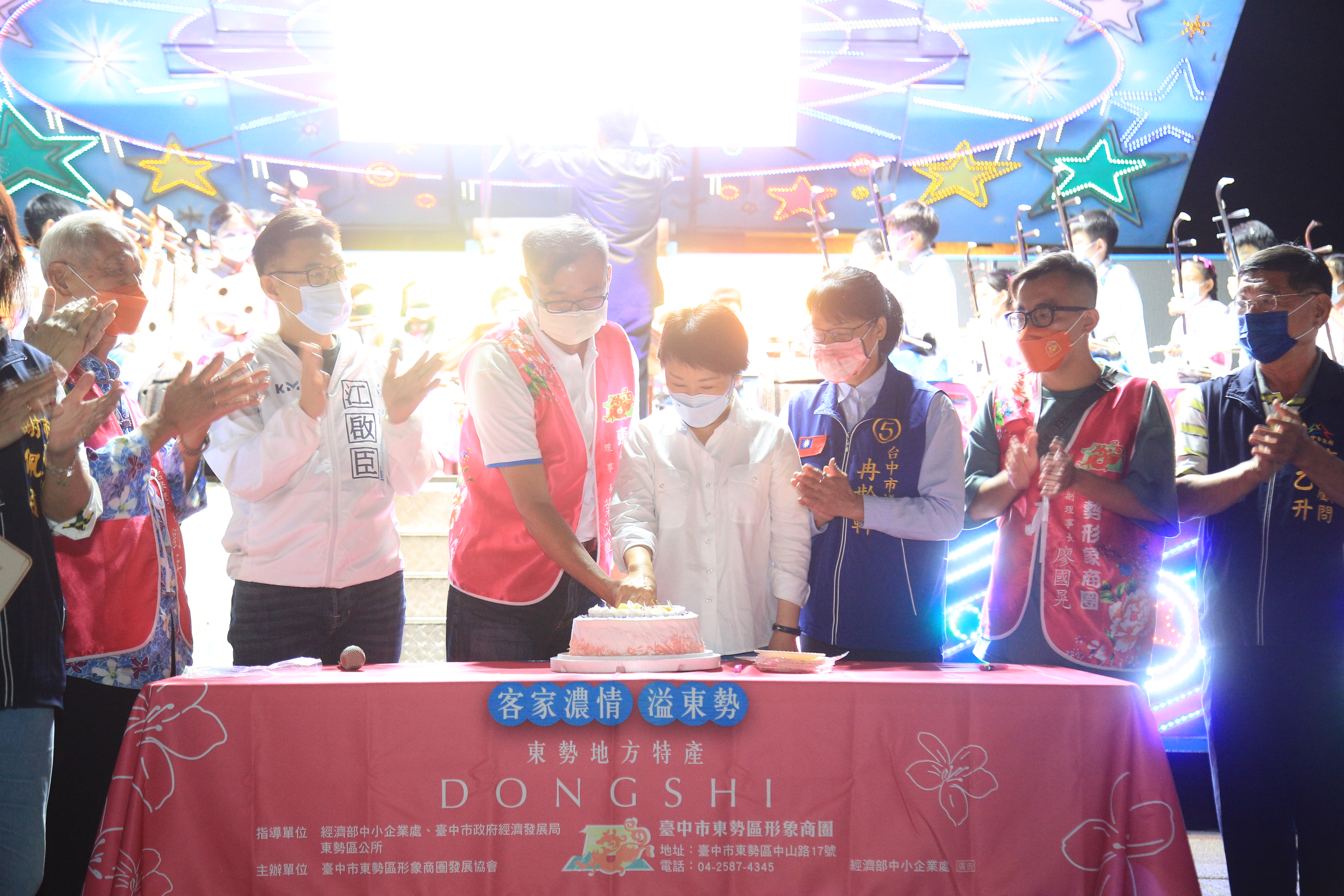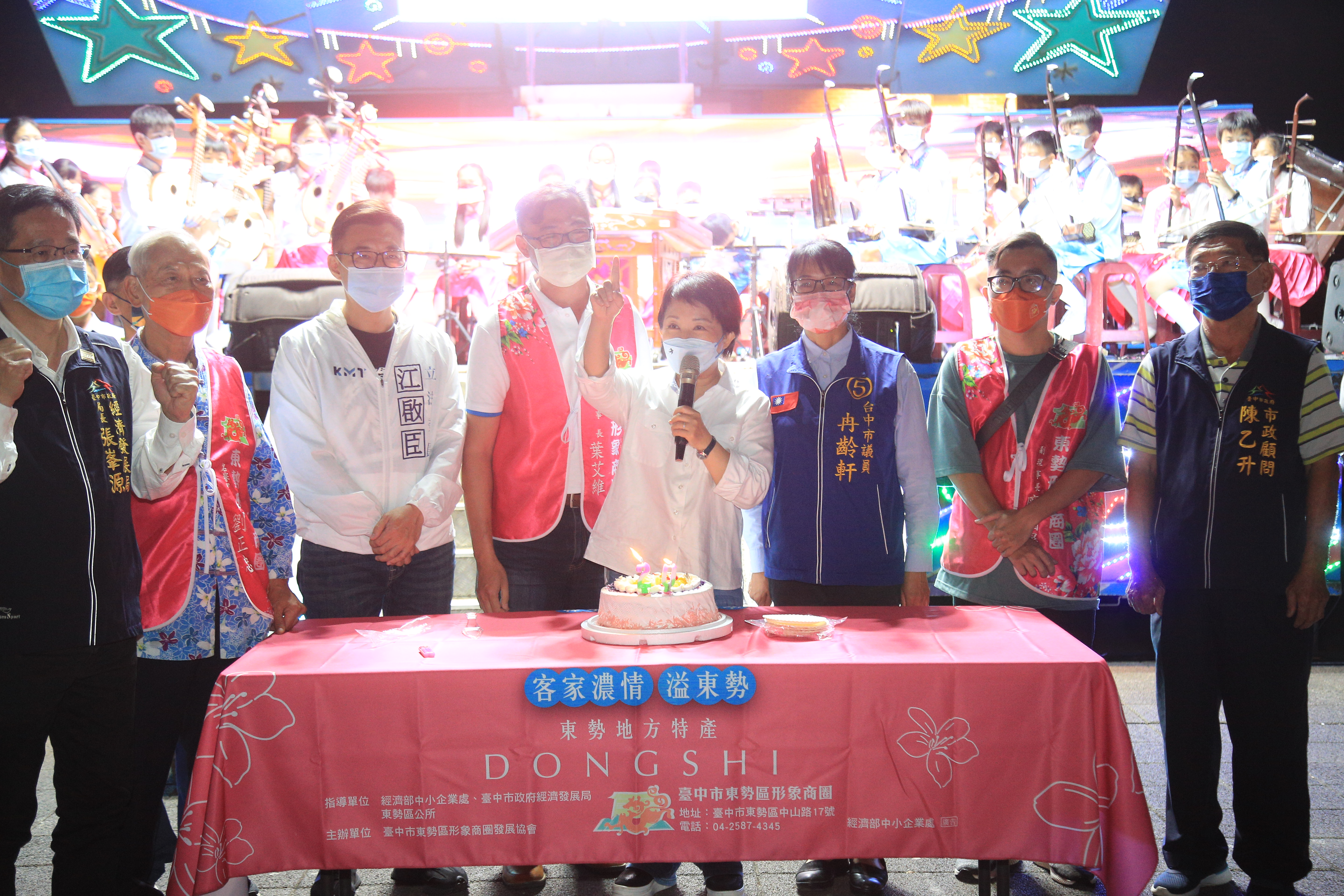 東勢區形象商圈今晚舉辦歡慶「魅梨無邊勢不可擋」20週年活動,市長盧秀燕出席祝賀東勢商圈生日快樂