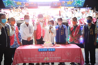 今日活動,首先由東勢國小國樂藝才班帶來4首精彩曲目,現場還邀請魔術表演、「戲說台灣」演員帶來精彩演出,更有象徵客家圓滿精神的限量盒蛋禮,邀請在地鄉親及遊客前來同樂。盧市長、立委江啟臣、市議員冉齡軒、經發局長張峯源、民政局長吳世瑋、客委會主委江俊龍、東勢區長翁培真、全國商圈總會理事長劉阿貞、台中市商圈觀光文化產業聯合會長張聖明、東勢區形象商圈發展協會理事長葉艾維及多位市政顧問、里長和台中市各商圈代表均到場出席,市議員蔡成圭也派員共襄盛舉。(10/26*8)*經發局