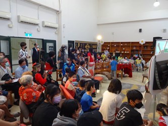 台中市政府原住民族事務委員會今(29)日舉行《ina kama族語故事屋》線上節目開播記者會,主委林益陸Pilin Suyan化身kama講故事給孩子聽,穿著族服的小朋友圍繞在主委身旁專心的聽故事。市府原民會表示,台中重視都會區原住民兒童的族語教育,是全國第一個由市政府規劃建置的十六族全族語線上故事節目及podcast節目,歡迎喜歡聽故事學族語的民眾一起聆聽。