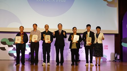 「台中市第27屆大墩美展」昨(5)日下午3時在台中市政府4樓集會堂舉行頒獎典禮,副市長黃國榮代表市長盧秀燕出席,現場揭曉象徵最高榮譽的5位「大墩獎」得主。今年共有來自全球1,300件作品報名參賽,最後評選出192件得獎作品,其中日本藝術家川內佑毅(Kawauchi Yuki)奪得篆刻類第二名佳績,也特地自東京抵台出席頒獎典禮;得獎作品即日起至11月23日於台中市大墩文化中心展出,歡迎民眾前往欣賞。