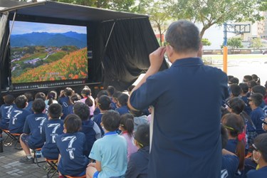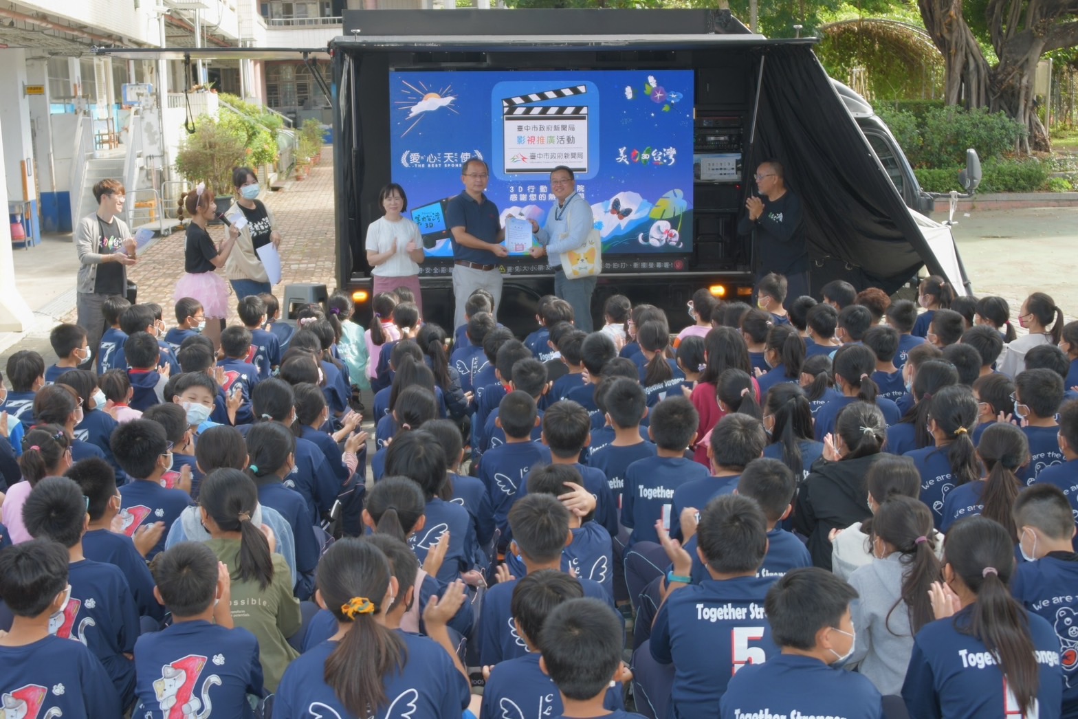 理事長趙文豪也特別感謝參與學校的協助,目前每場演出持續遵守校園防疫規範,播映前也會向小朋友們叮嚀「勤洗手、戴口罩」等防疫措施,並讓觀賞的學童保持適當社交距離,他感謝台中市政府的協助,行動電影院再次前進台中校園,將影視教育扎根。