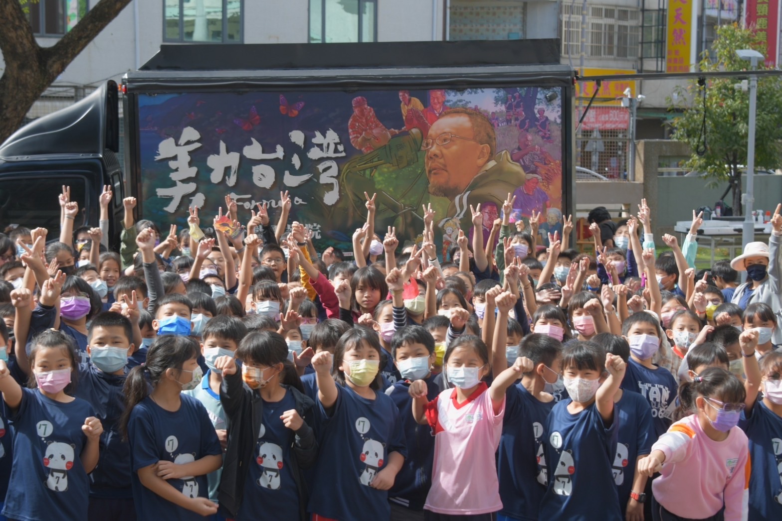 疫情趨緩,「美力台灣3D行動電影院-台中巡演計畫」重返巡迴台中校園,預計將有600名師生體驗3D電影的獨特魅力。昨(1)日巡演列車首站開進潭子國小,新聞局長鄭照新、美麗台灣創辦人曲全立、理事長趙文豪與校長陳銘鎮及師生相見歡,也在《美力台灣系列3D電影》與《台灣超人》系列影片放映中,與學生一同感受台灣豐沛生命力與超人們生命故事寓意,盼能帶起校園及社會中更多真善美。