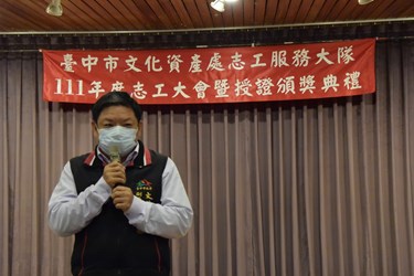 施副局長表示,歷年來志工夥伴們的導覽服務範圍遍及全市,為社會大眾提供專業深入的導覽解說,成為維護和推廣台中市文化資產的重要推手,此外,台中市文資志工不只守護著台中的文化資產,在疫情期間還守護著民眾的健康,感謝志工夥伴的熱心與奉獻。