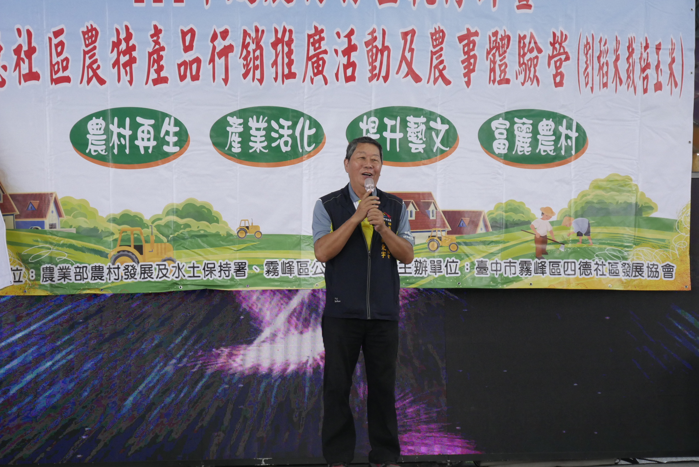 為活絡農村發展並推廣食農教育,農業部農村發展及水土保持署與台中市政府農業局共同輔導霧峰四德社區發展協會,於今(27)、明兩日舉辦「樂在四德—食農教育體驗營及田邊假日市集嘉年華」,邀請市民走進田野、親近農村,感受在地農村的魅力。