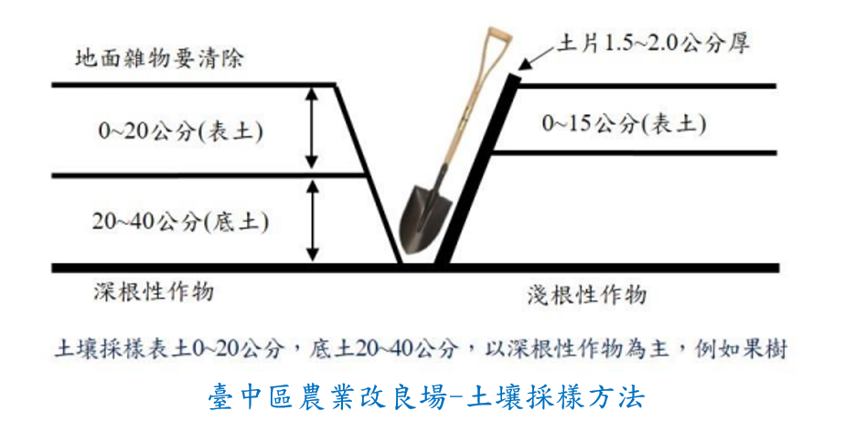 - 請於施肥前30-40天多加利用農業部農業試驗所或臺中區農業改良場為農友免費提供的「土壤肥力診斷服務」,並依診斷結果及洽詢農業部農業試驗改良場(所)專家指導並實施合理化施肥。